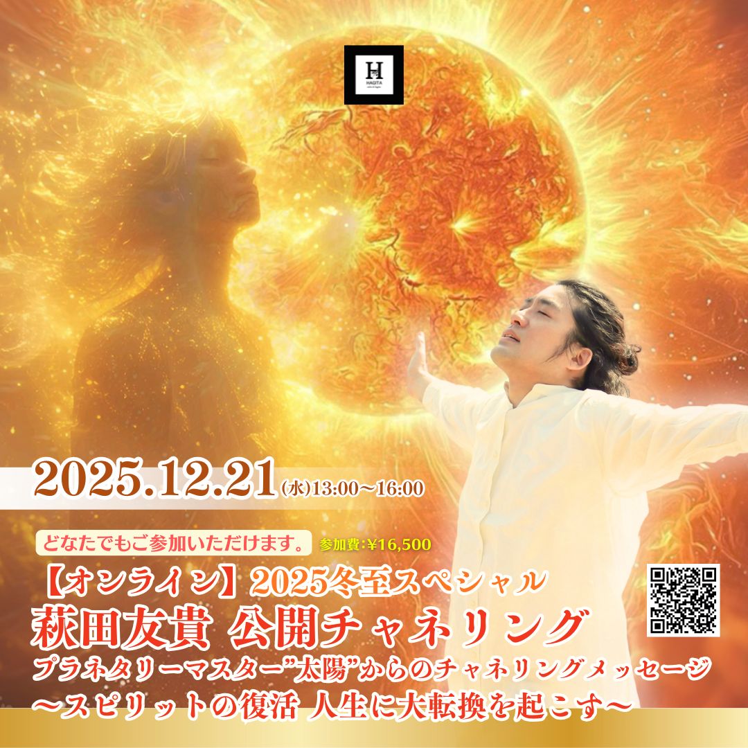 12/21(日)開催 2025冬至スペシャル 萩田友貴 公開チャネリングプラネタリーマスター“太陽”からのチャネリングメッセージ ~スピリットの復活 人生に大転換を起こす~