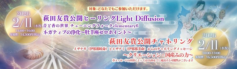 2/11 (水祝) 萩田友貴公開ヒーリングLight Diffusion 音と香の世界 チューニングフォークelementary6 ネガティブの浄化〜牡羊座ゼロポイント〜