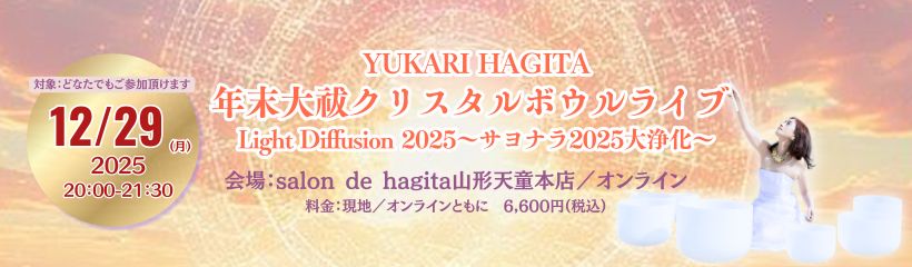 現地&オンラインで開催!12/29(月)YUKARI HAGITA 年末大祓クリスタルボウルライブ Light Diffusion 2025 〜サヨナラ2025大浄化〜