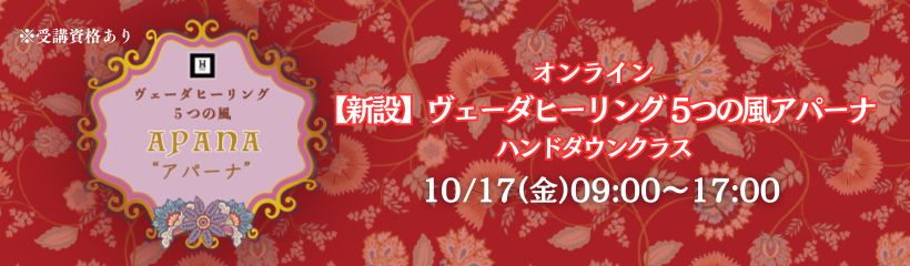 10/17(金)開催 【新設】ヴェーダヒーリング5つの風 アパーナ ハンドダウンクラス