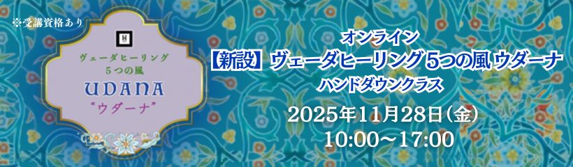 2025.11.11 【2025.11.11】12/25(木)・26(金)・27(土) 【新設】ヴェーダヒーリング 5つの風 ウダーナ ハンドダウンクラス 講師変更のお知らせ