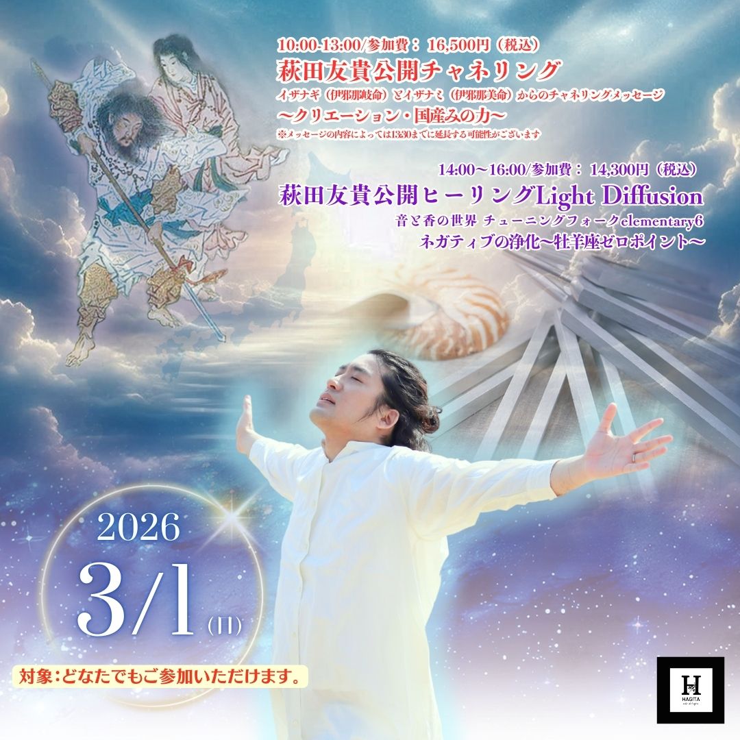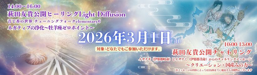 2026.2.12 【2026.2.12】2/11(水祝)萩田友貴 公開チャネリング及び公開ヒーリング 開催日程決定のお知らせ