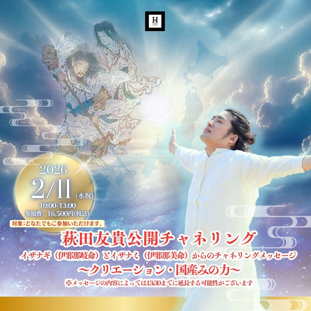 2/11 (水祝) 萩田友貴公開チャネリング イザナギ(伊邪那岐命)とイザナミ(伊邪那美命)からのチャネリングメッセージ 〜クリエーション・国産みの力〜