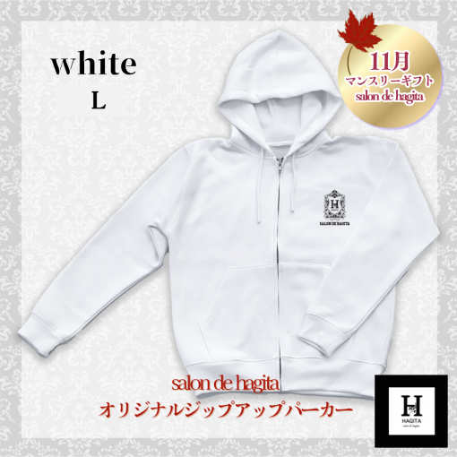 【11月マンスリー】salon de hagita オリジナルジップアップパーカー White L