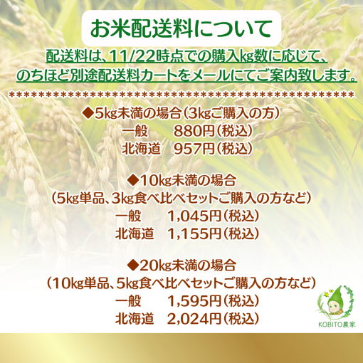 ※配送料は、11/22時点での購入㎏数に応じて,のちほど別途配送料カートをお送りいたします。