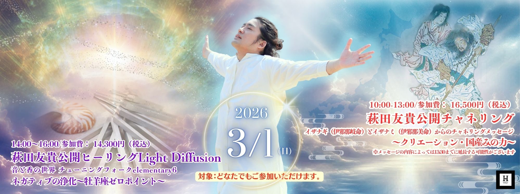 萩田友貴公開チャネリング イザナギ(伊邪那岐命)とイザナミ(伊邪那美命)からのチャネリングメッセージ 〜クリエーション・国産みの力〜