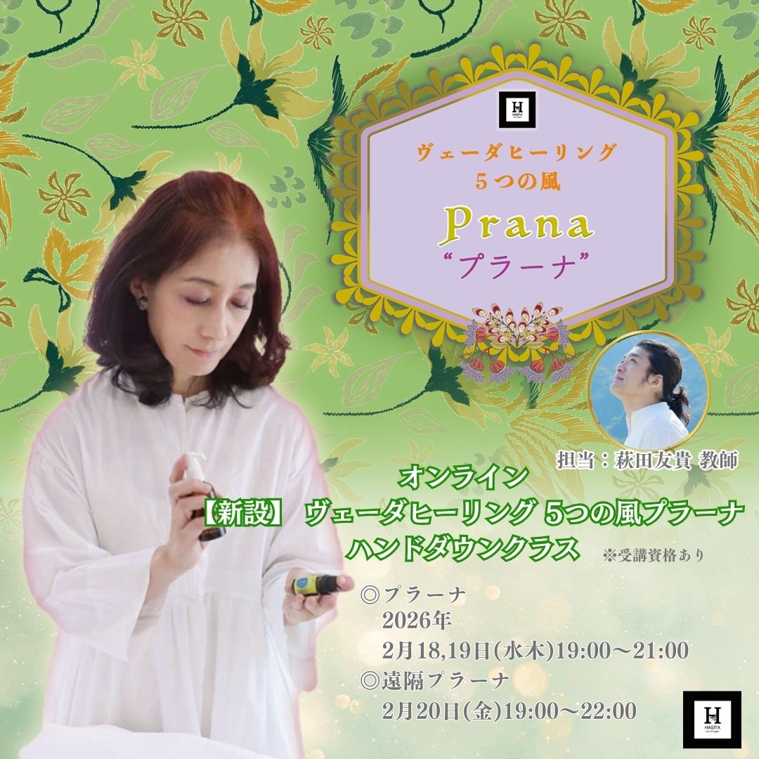 2/18(水)~2/20(金) 夜間開催クラス 【新設】ヴェーダヒーリング 5つの風 プラーナ ハンドダウンクラス